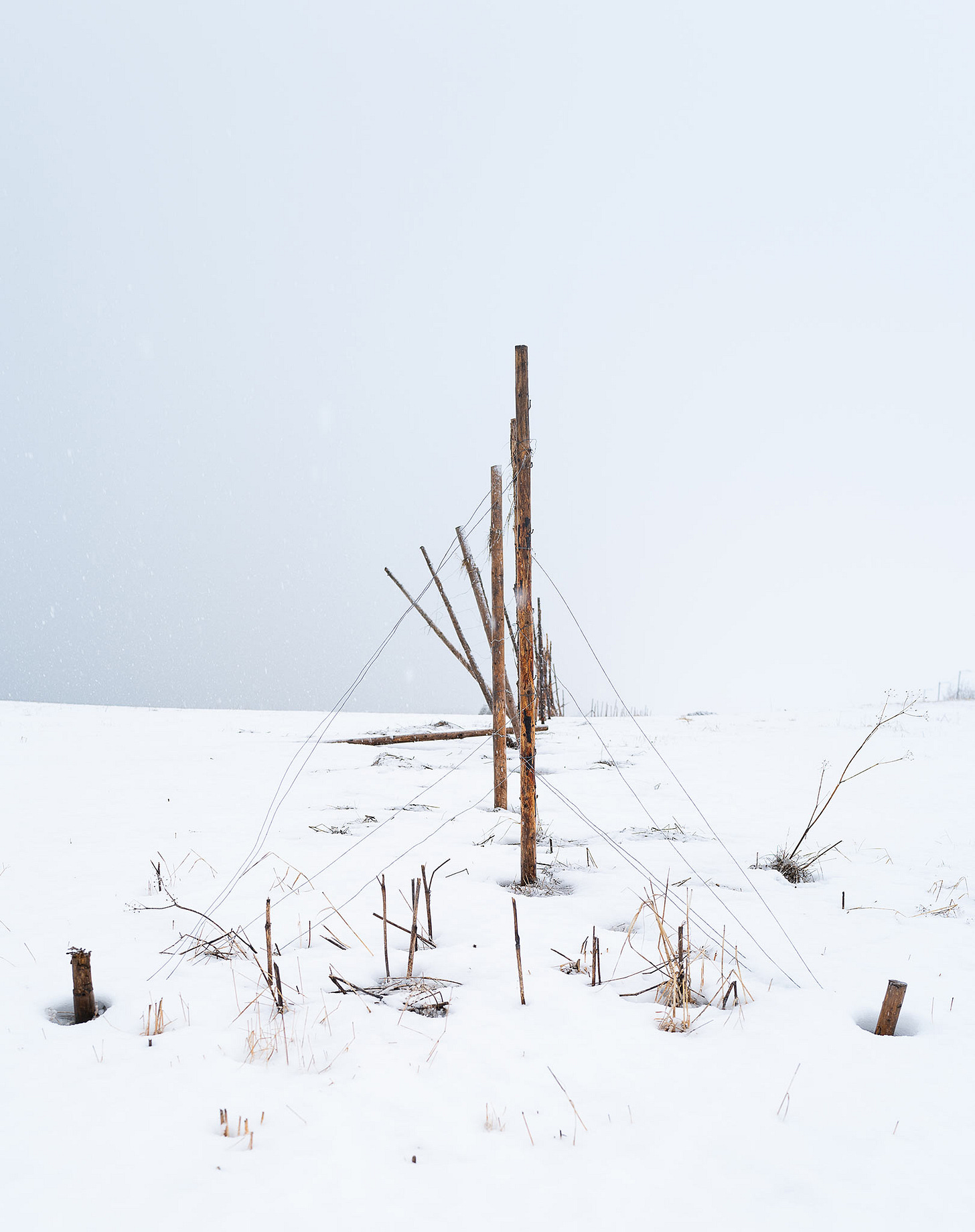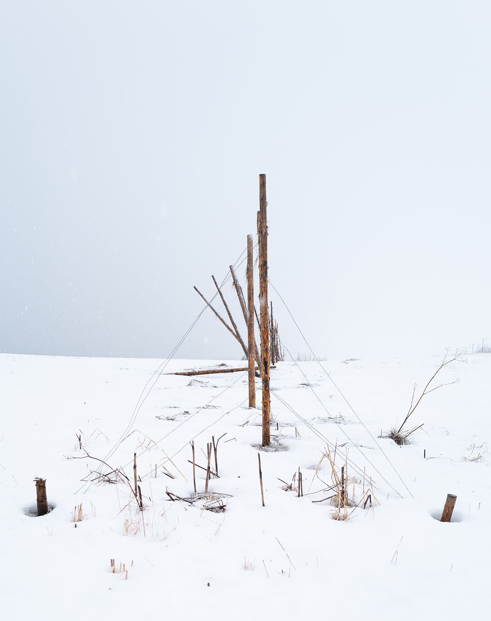 Eva's picture was taken on a windy and snowy March day with little light. "I was driving around and suddenly saw this beautiful fence far out in a field", Eva recounts. "It was cold and difficult to get there but the closer I got, the happier I became. I was attracted by the geometrical form and the simple but strong construction".