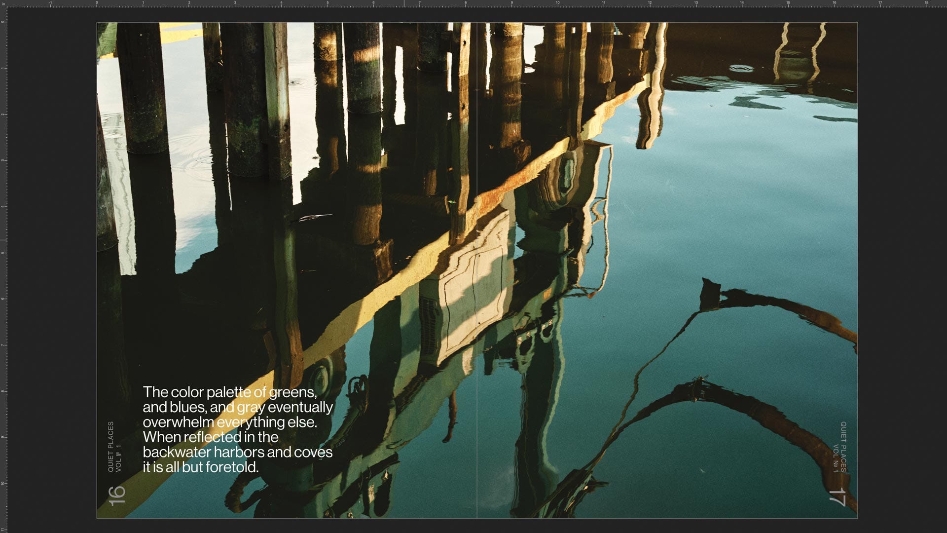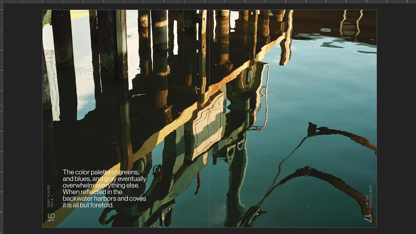 I leaped in, placing the not so terrible pictures into the layouts. As I did this the seeds for an editorial voice emerged. That voice in turn helped me make judgment calls on sequence and juxtaposition. The constraints I defined at the start took on a clear shape, some pictures wanted to be big. Other pictures wanted to be small. I might have a story and rhythm now…