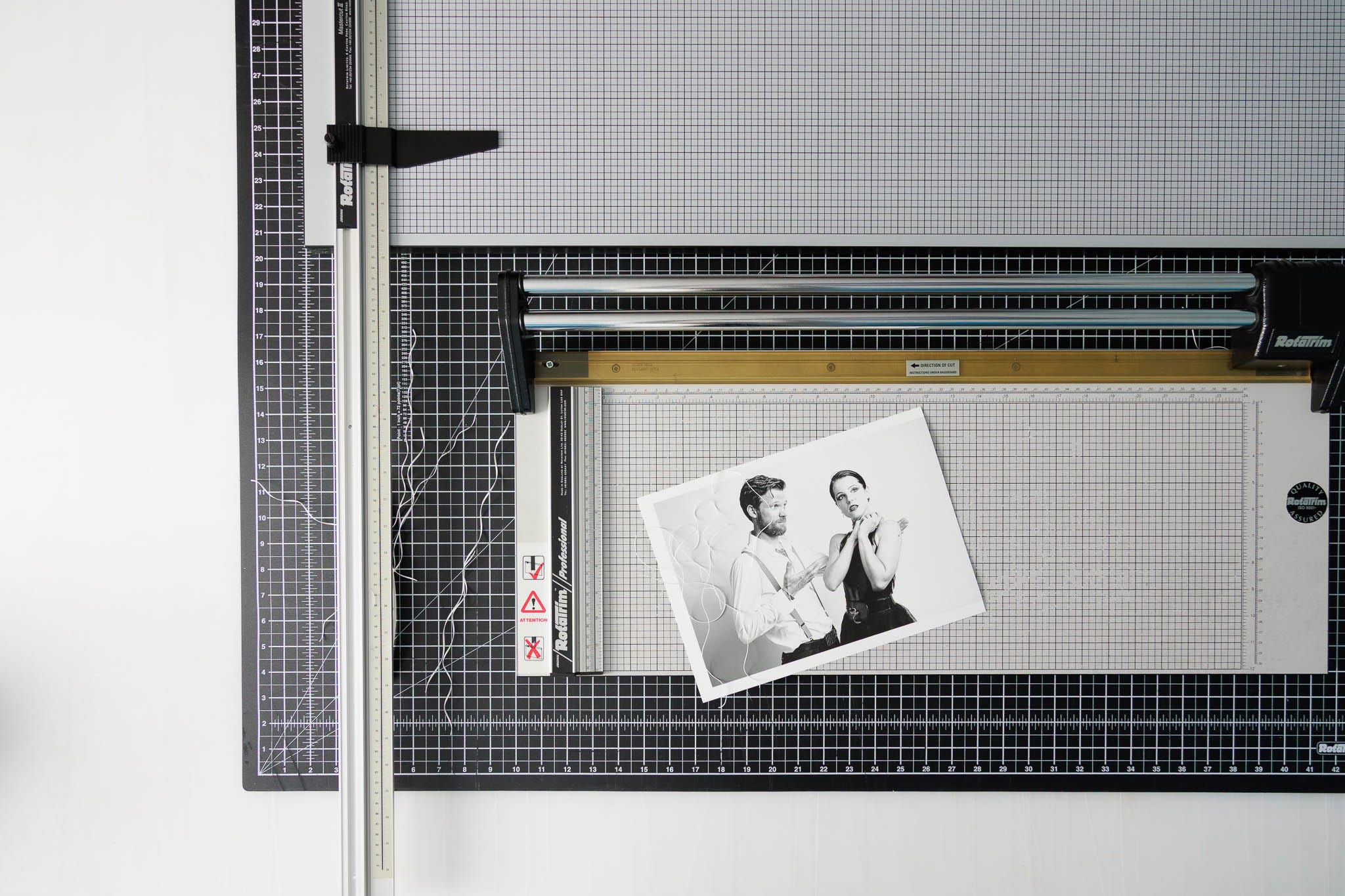 When I first partnered up with Les way, way back almost 20 years ago we were making prints. The first time I was around and needed to cut one sheet into a few I asked where his trimmer was. He went and brought in some sort of office-store “Fiskers” or something trimmer. I refused to use it, seriously, I refused, calling it a piece of junk that will ruin more prints than not. The next day I chucked the ol’ Rotatrim in my car and it’s never left the studio again. In fact Les immediately bought the 24inch' cutter’s big-big brother — The 54inch, not just the biggest but also with the 36inch extension ruler (which can be used on any of the Pro-M series trimmers).
