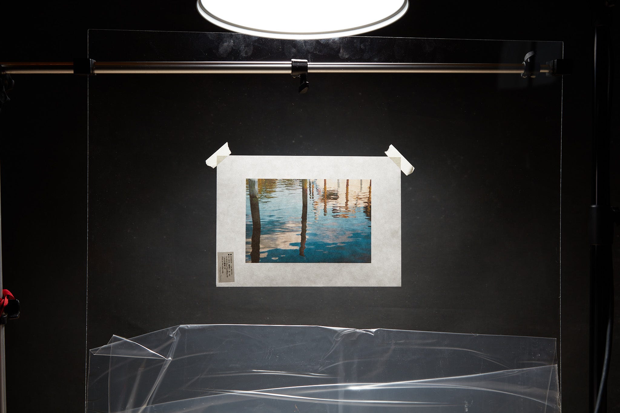 Almost every exhibition space will have some sort of lighting that’s fairly close to where art is hung on the wall. Merely hanging Awagami prints from the ceiling a bit away from the wall with those lights slightly behind the print will be exactly what’s needed. Even a space with window light that reflects off light-colored walls behind a print will work. That’s what I was seeing with no lights on in the situation above. The only thing I need to do now is find attractive, practical ways of suspending the paper or mounting it with no backing.