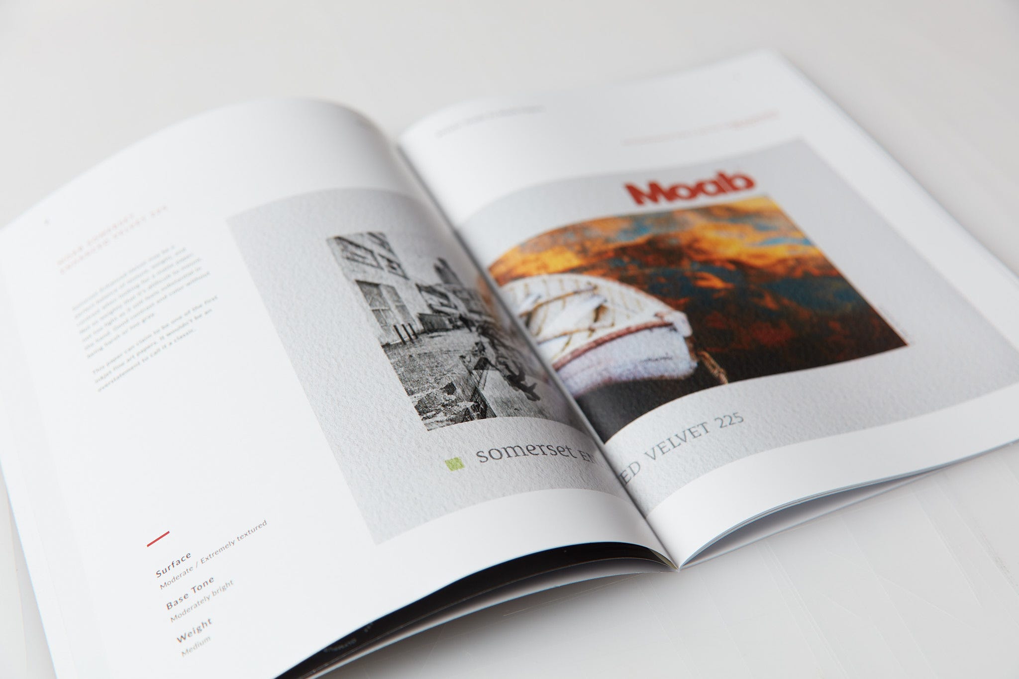 Moab should make available for a price the book offered as a folio with each print on the appropriate paper. There is a difference between having sample papers and professional prints on those papers. .