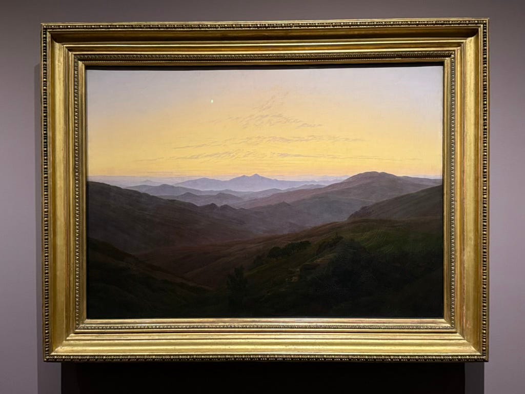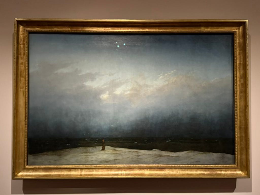 The painting that held me spellbound was "Monk by the Sea", one of Friedrich's most praised works of art.